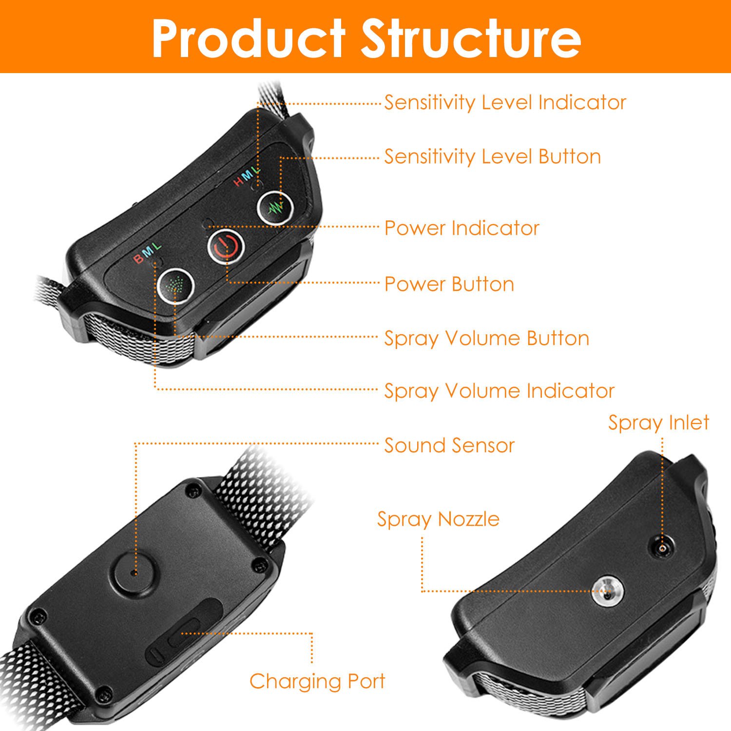 *IP65 Waterproof*:The excellent IP65 waterproof performance makes this dog spray collar function well in harsh weathers like raining and snowing. In the meatime,the bark collar also allows your dog to swim or run in the rain. Make sure that the charging port is well-sealed before the dog runs into water.
