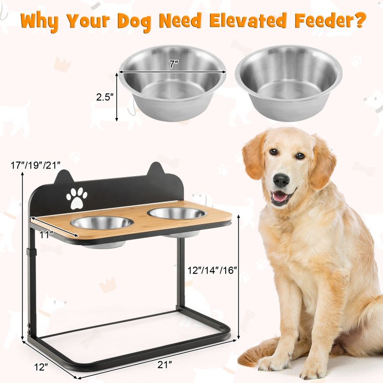 1.Witness the Growth of Dogs: With 3 adjustable heights, the elevated dog bowls can be adjusted to 12"/14"/16" high off the ground, which is suitable for medium and large sized dogs. And the reasonable height is beneficial to healthy spinal growth. Hence, it is a perfect gift that suitable for accompanying the growth of the dog.