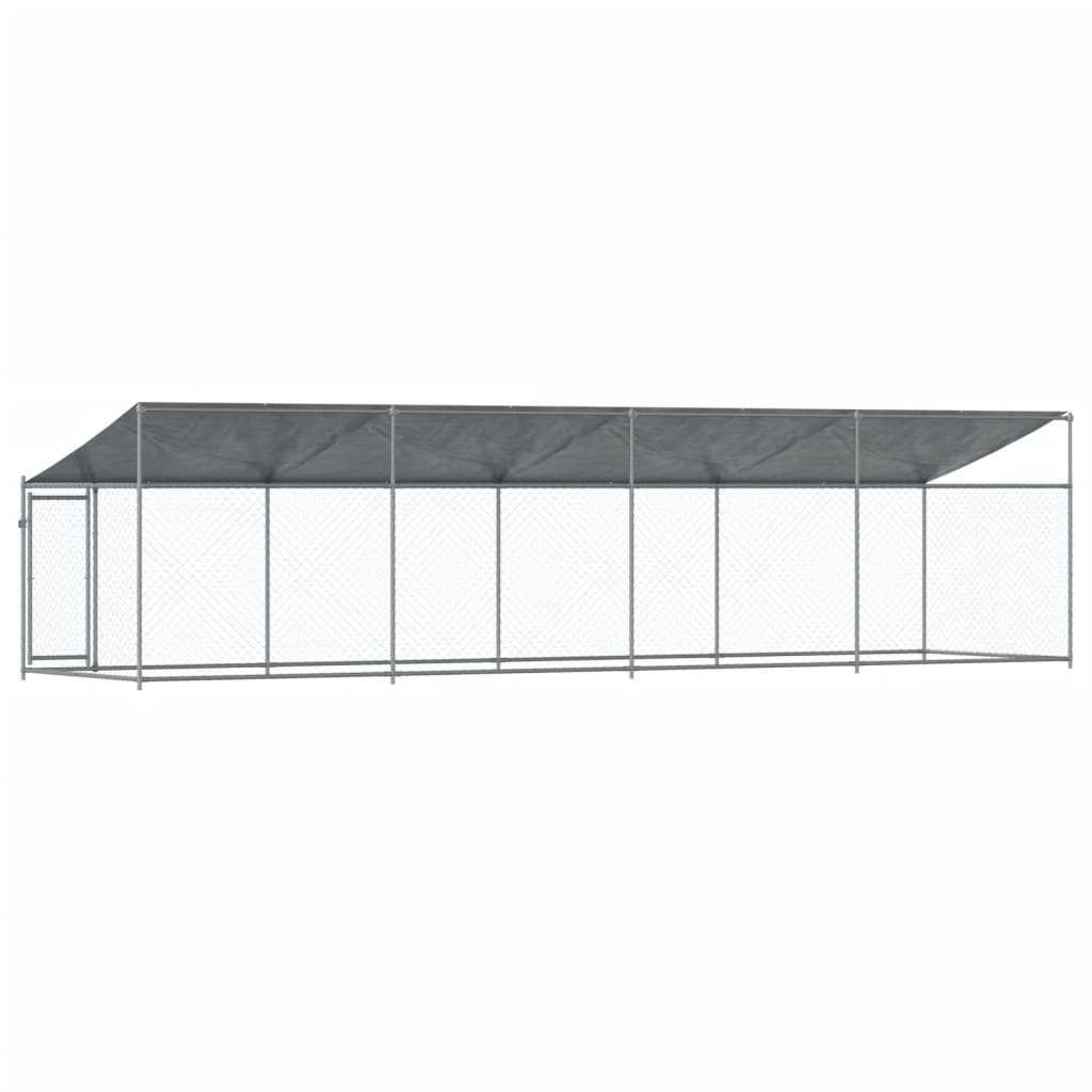 Dog Cage with Roof and Door Gray 26.2'x6.6'x6.6' Galvanized Steel