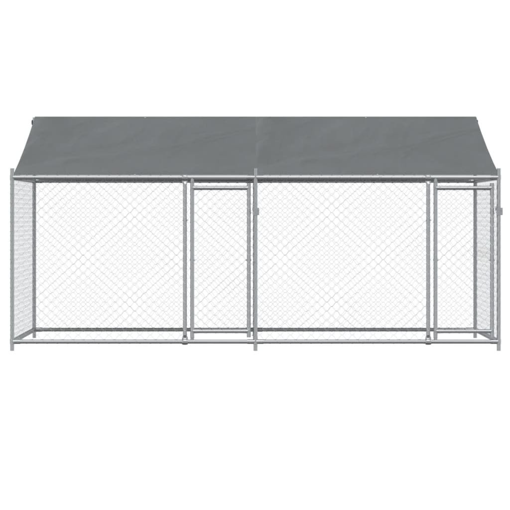Dog Cage with Roof and Doors Gray 13.1'x6.6'x6.6' Galvanized Steel