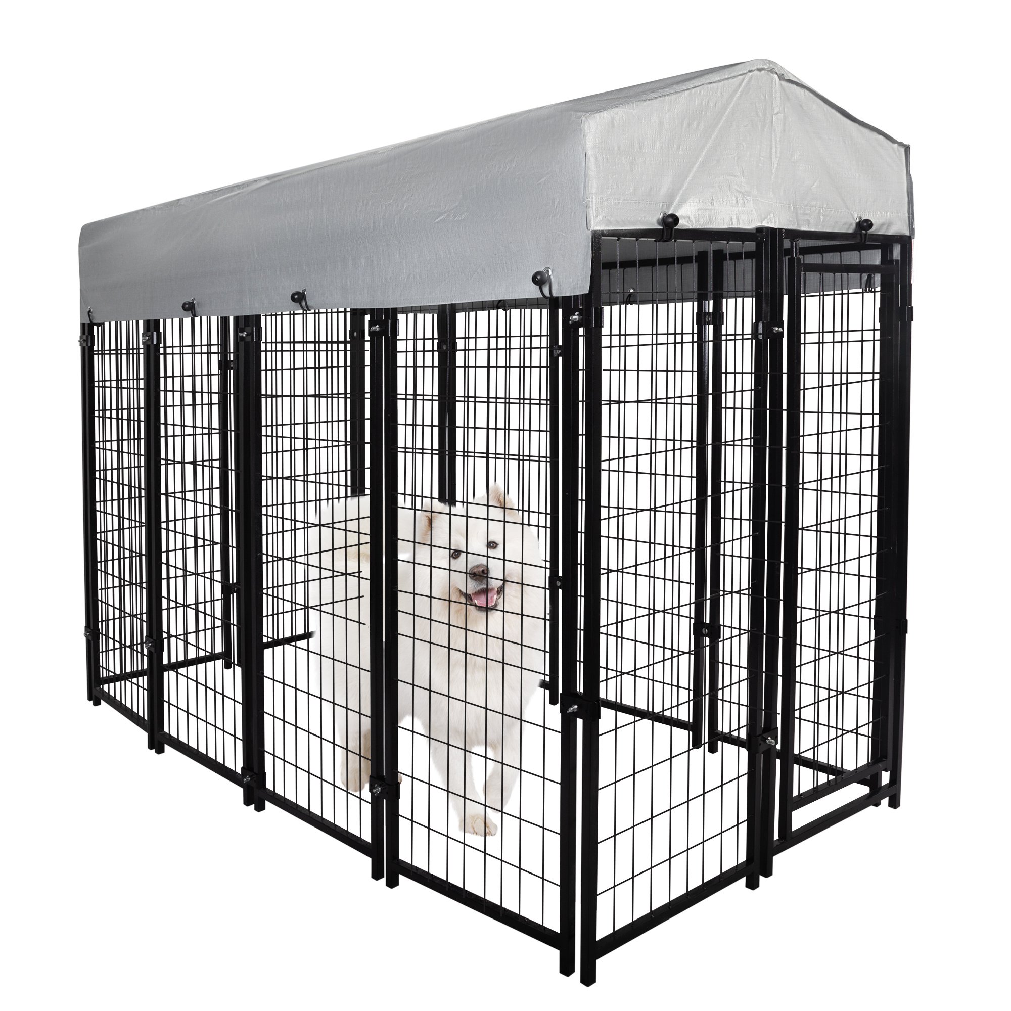 Home > Dog Kennel with Roof Cover Heavy Duty Dog Crate for Medium and Large-sized Dogs, Black (Sandblasted)
