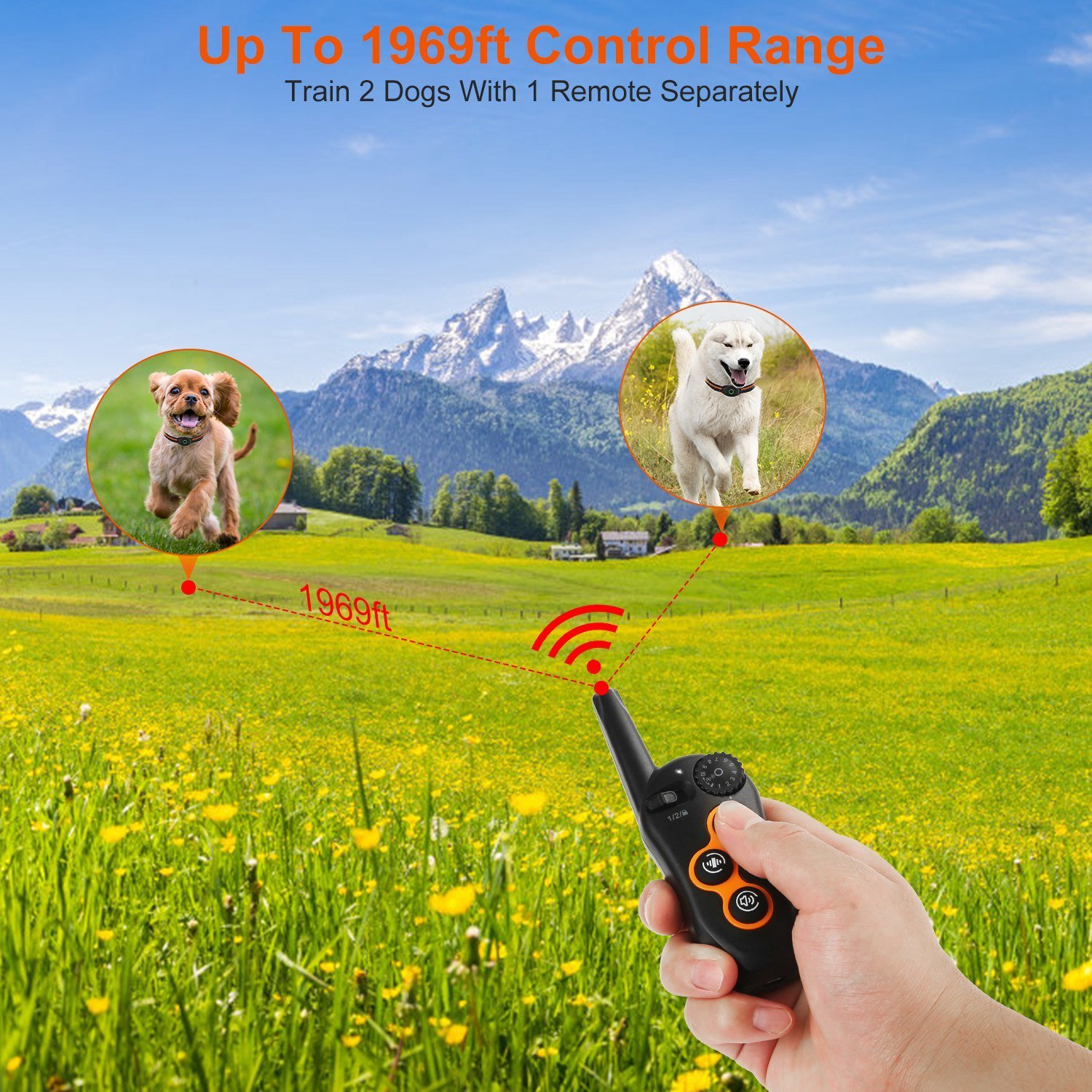 *Indoor & Outdoor Usage*:With a remote range of 1969ft; you can simply press the button when your dog begins to chew the furniture; excessively bark or pull the leash. It can be handy if you’re teaching your dog off-leash commands in the park; backyard; or anywhere else.