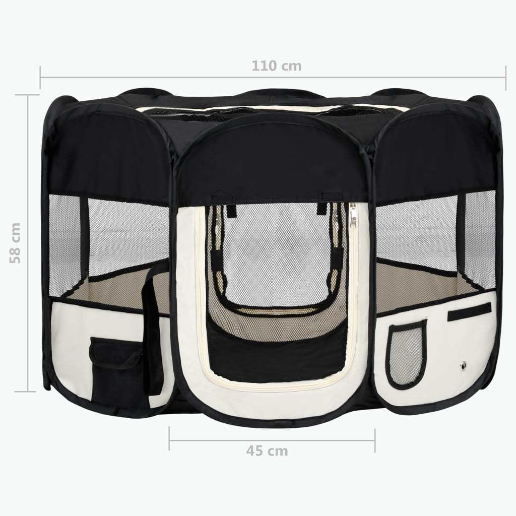 Foldable Dog Playpen with Carrying Bag Black 43.3"x43.3"x22.8"