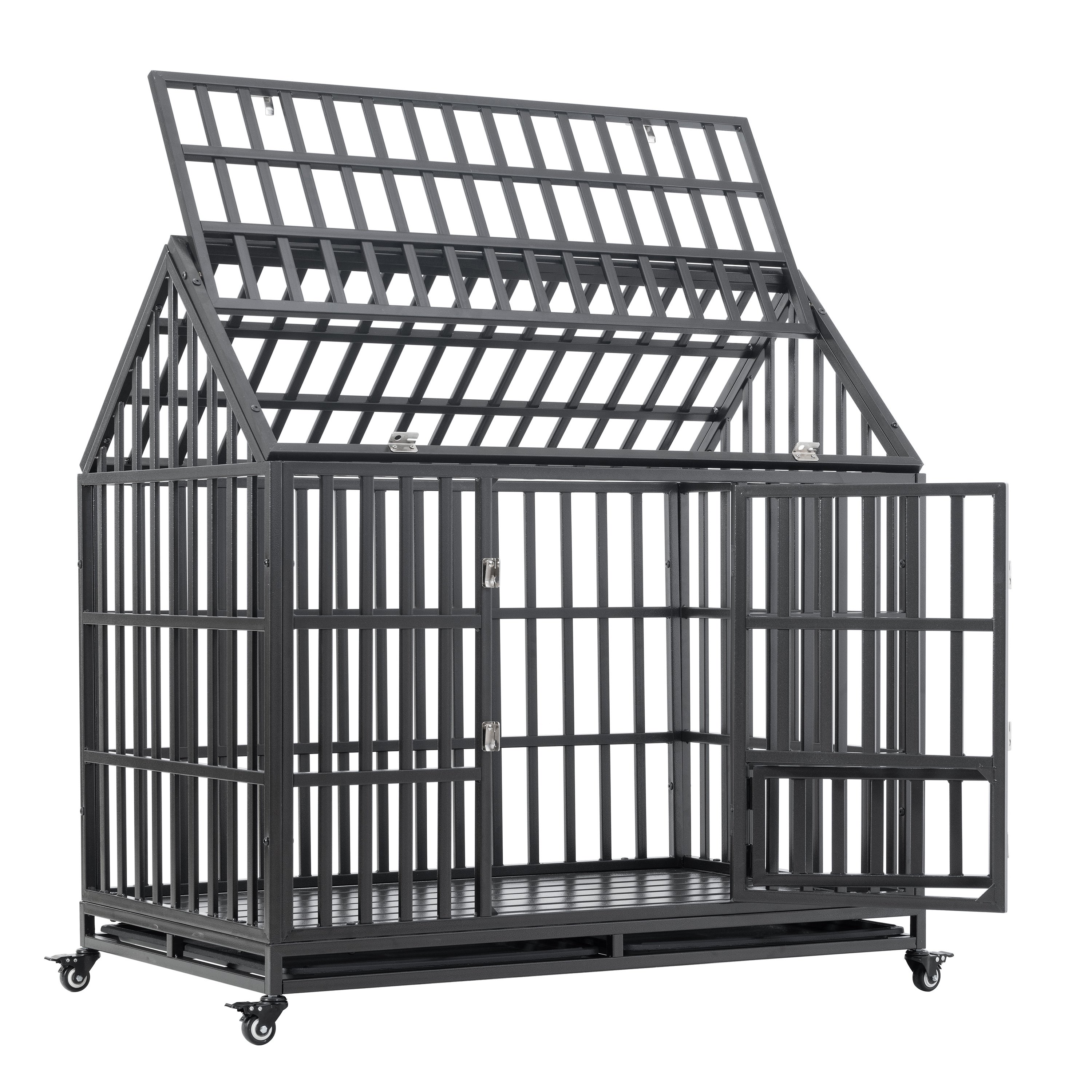 Heavy Duty Dog Cage pet Crate with Roof & window on roof