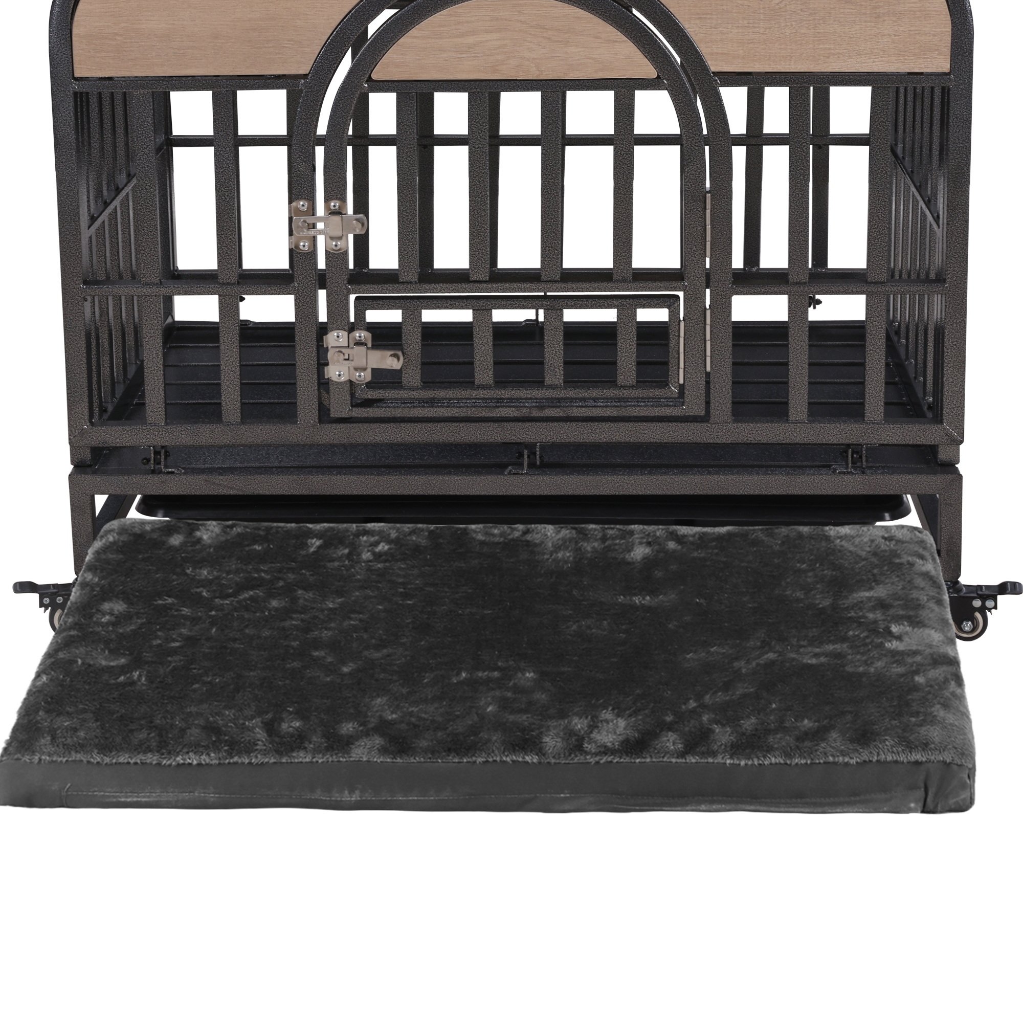32in Heavy Duty Dog Crate, Furniture Style Dog Crate with Removable Trays and Wheels for High Anxiety Dogs