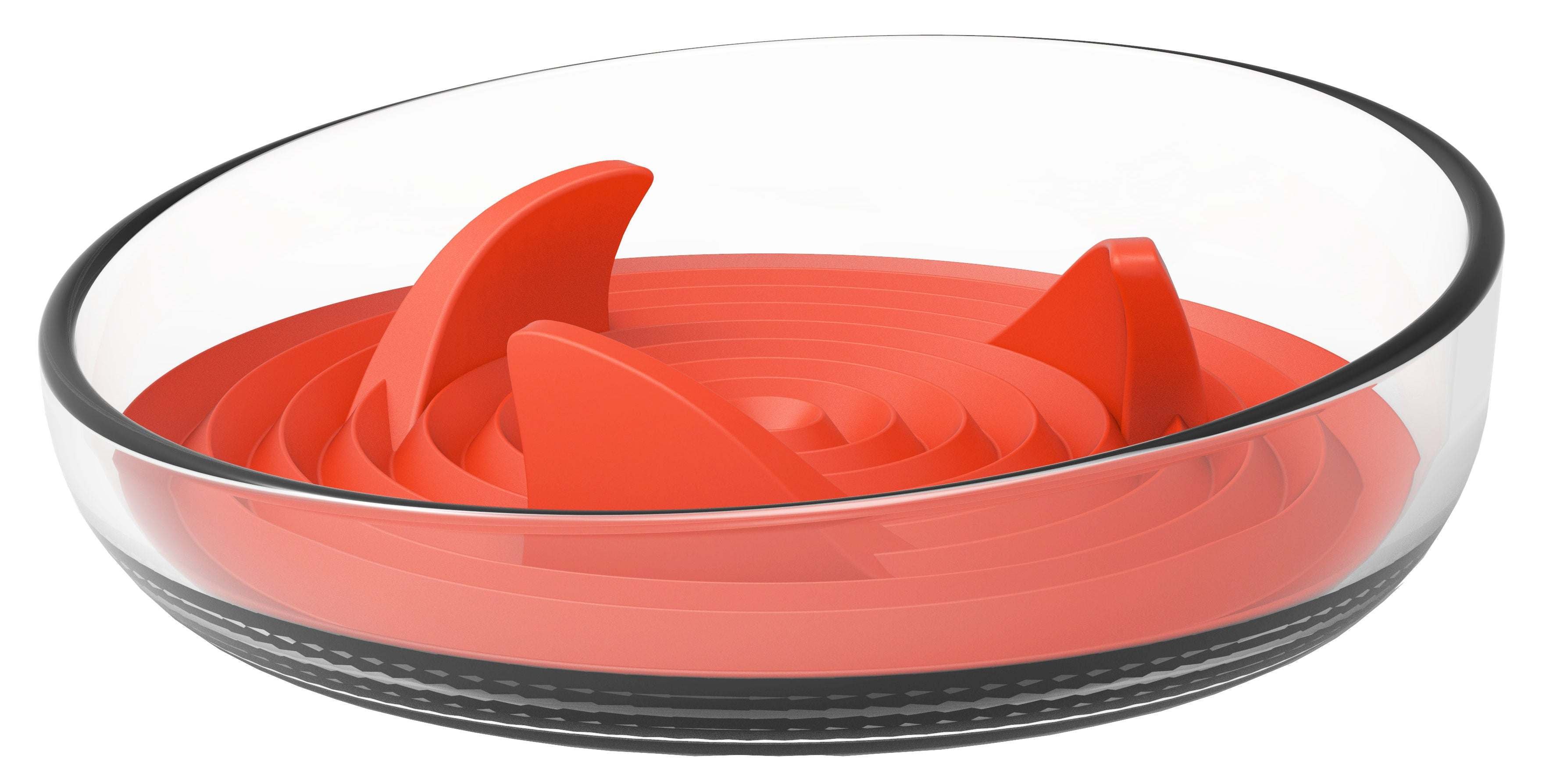 The Pet Life ® 'Cirlicue' Shark Fin Shaped Modern Slow Feeding Pet Bowl is composed of High-Grade Thick and Durable clear transparent plastic material that is harder to break, easy to wash and dishwasher safe. The bottom interior of the bowl features a removable and insertable unique Rubber-like bendable Silicone and TPR Material with shark-fin inspired shapes and ridges that creates a slow feeding experience that helps ease digestion. The bowl features a modern tilted-edge design for less neck stress and reach-over. The Shark-Finned and peel-off TPR insert make it easier and convenient to clean out grease and grime without any crevices. Reversed with curved rubberized grips for heavy-duty traction. Available in Multiple Colors.