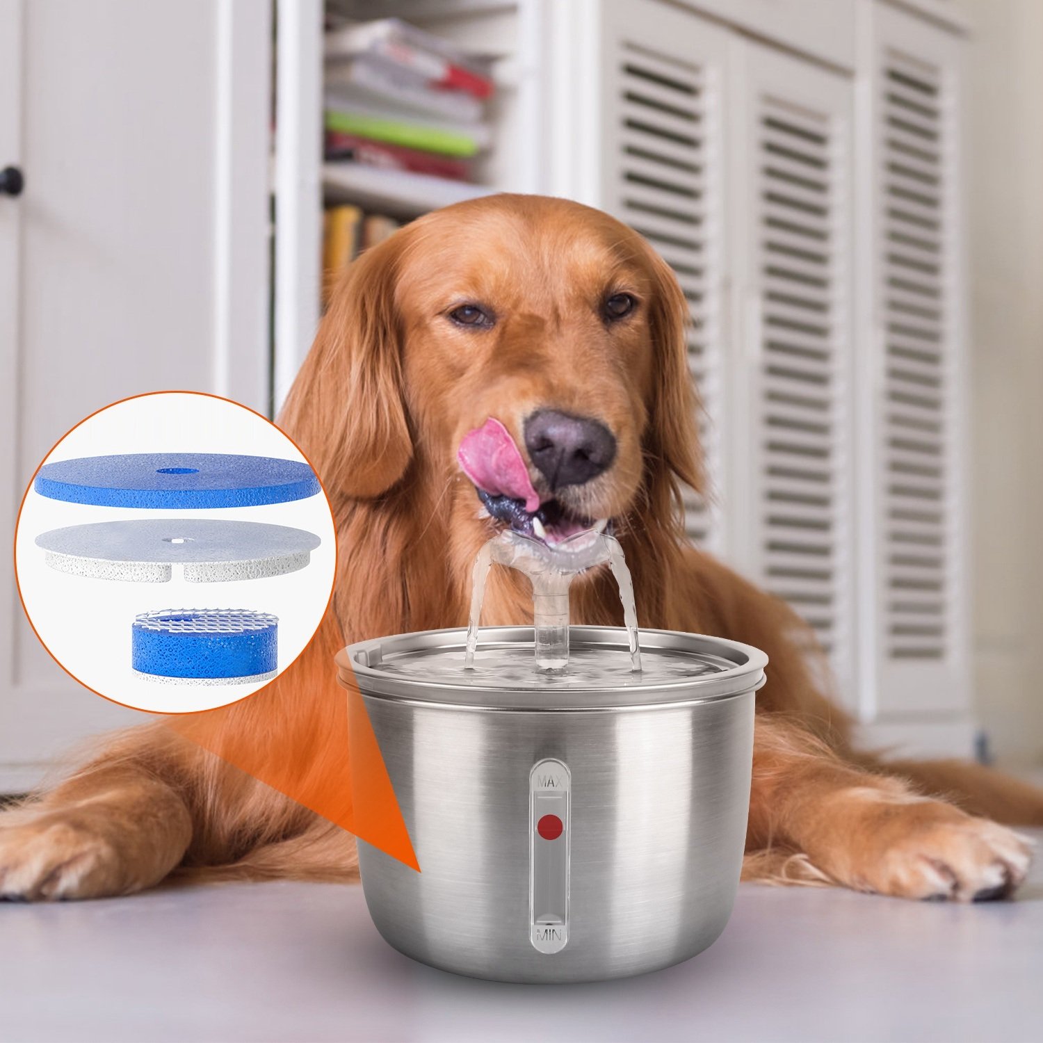 *4-Stage Filtration System*:Made of double sponge,activated carbon,ion resin and 8D filter cotton,the filter set forms a 4-stage filtration system for our GPCT4115 Pet Water Fountain to effectively remove impurities,odors,and chlorine from the water,providing clean and great-tasting water for your pets.