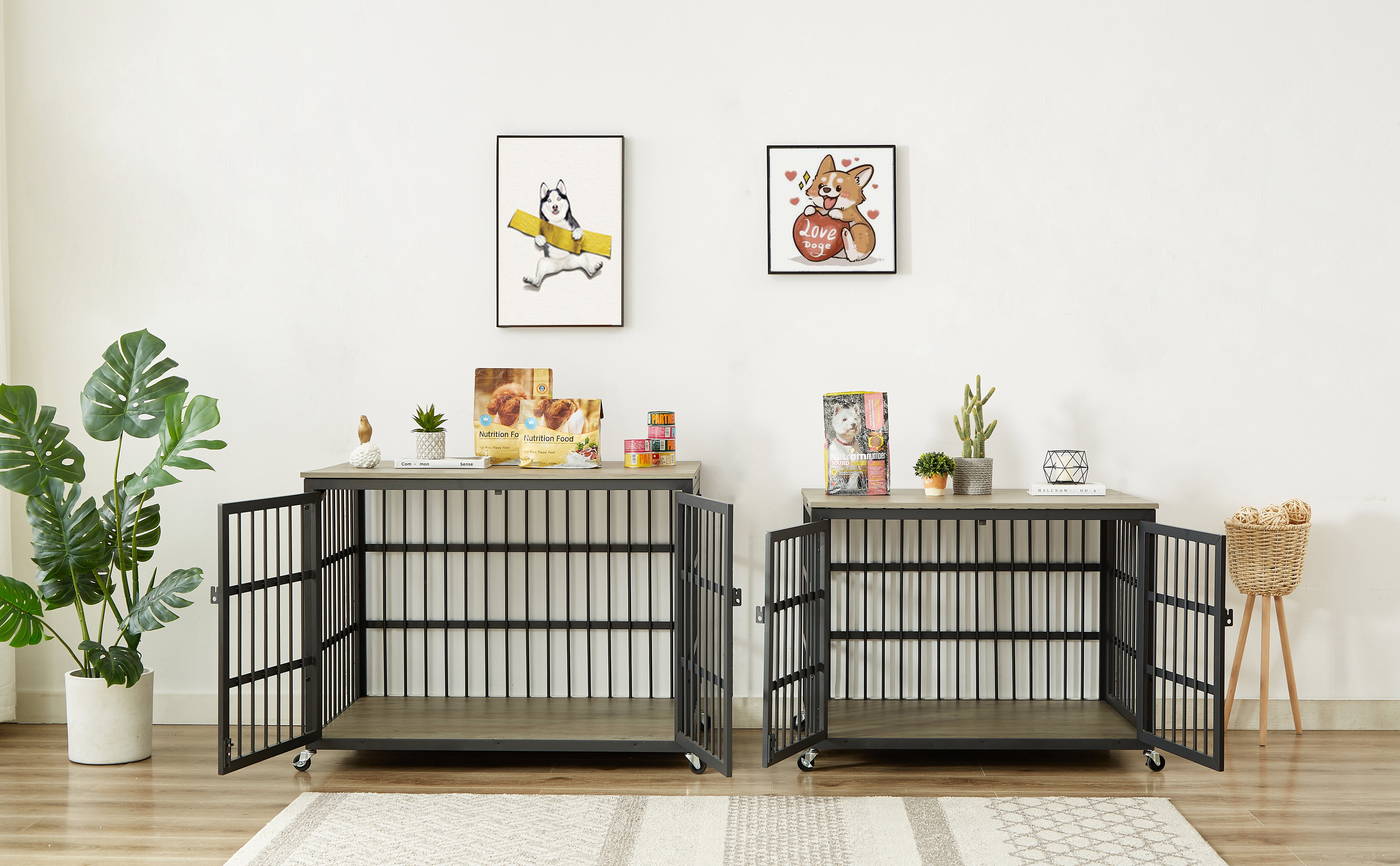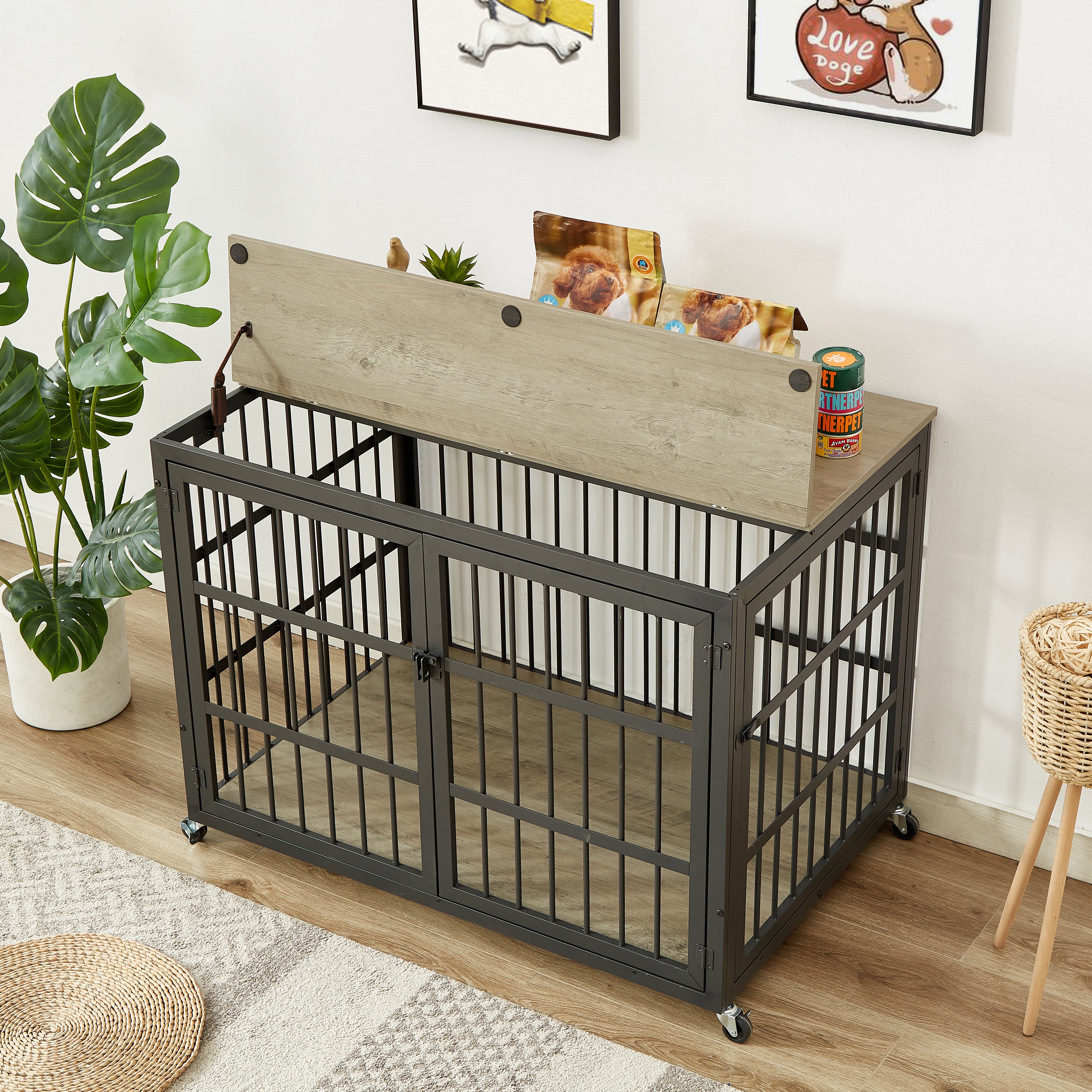 Home > Furniture style dog crate wrought iron frame door with side openings, Grey, 43.3''W x 29.9''D x 33.5''H.