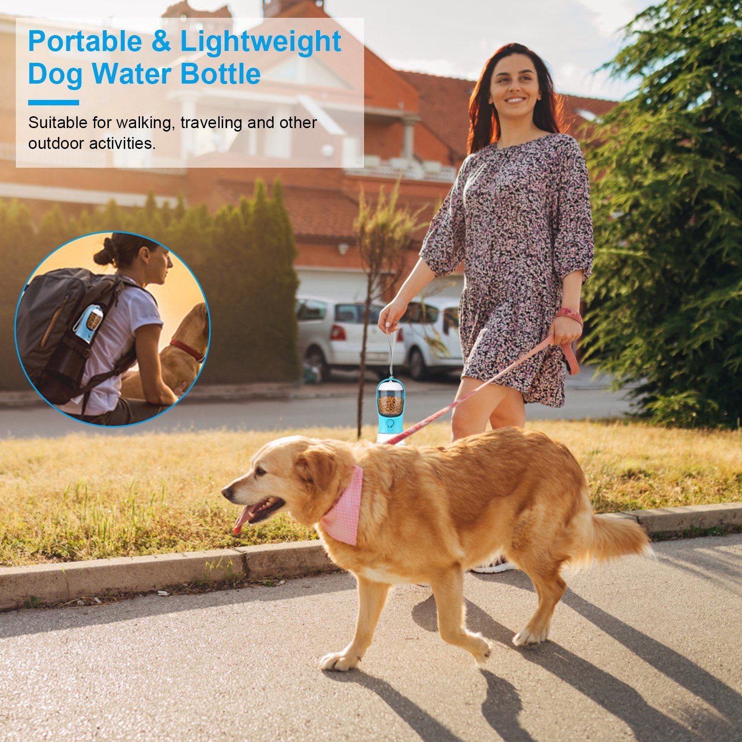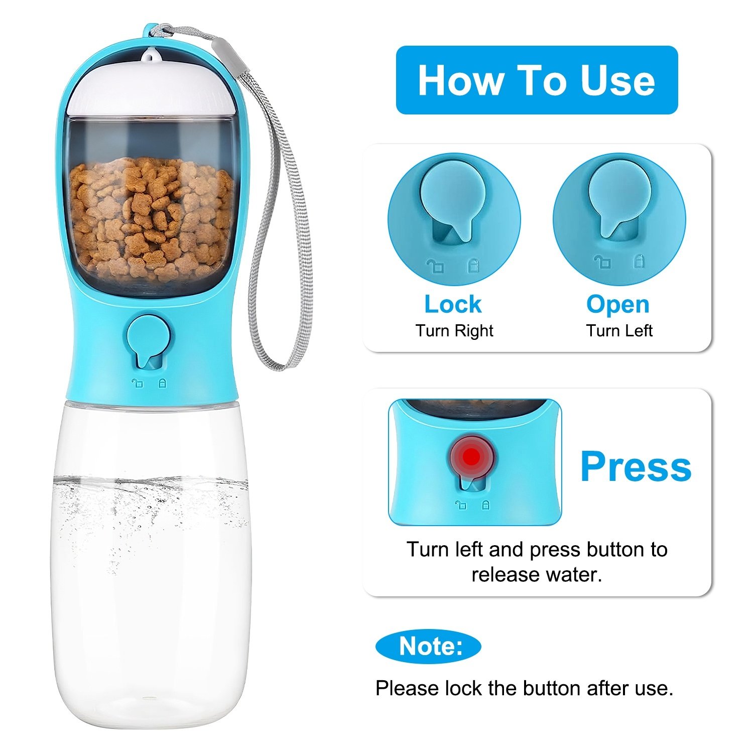 18.6OZ Portable Dog Water Bottle Pet Water Dispenser with Detachable Food Container Leak-Proof Lock Design for Dog Walking Traveling Hiking Outdoor Ac