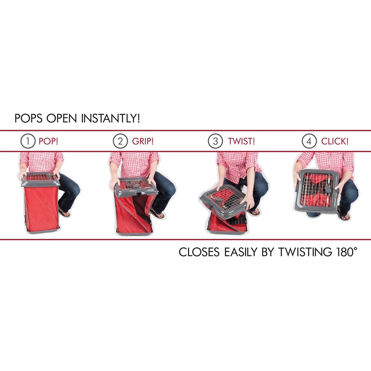 1.POP OPEN CONVENIENCE Much easier and more portable than clunky hard-side kennels, the Sport Pet Pop Crate goes from compact and easy to store to full-size pooch comfort with a simple twist.