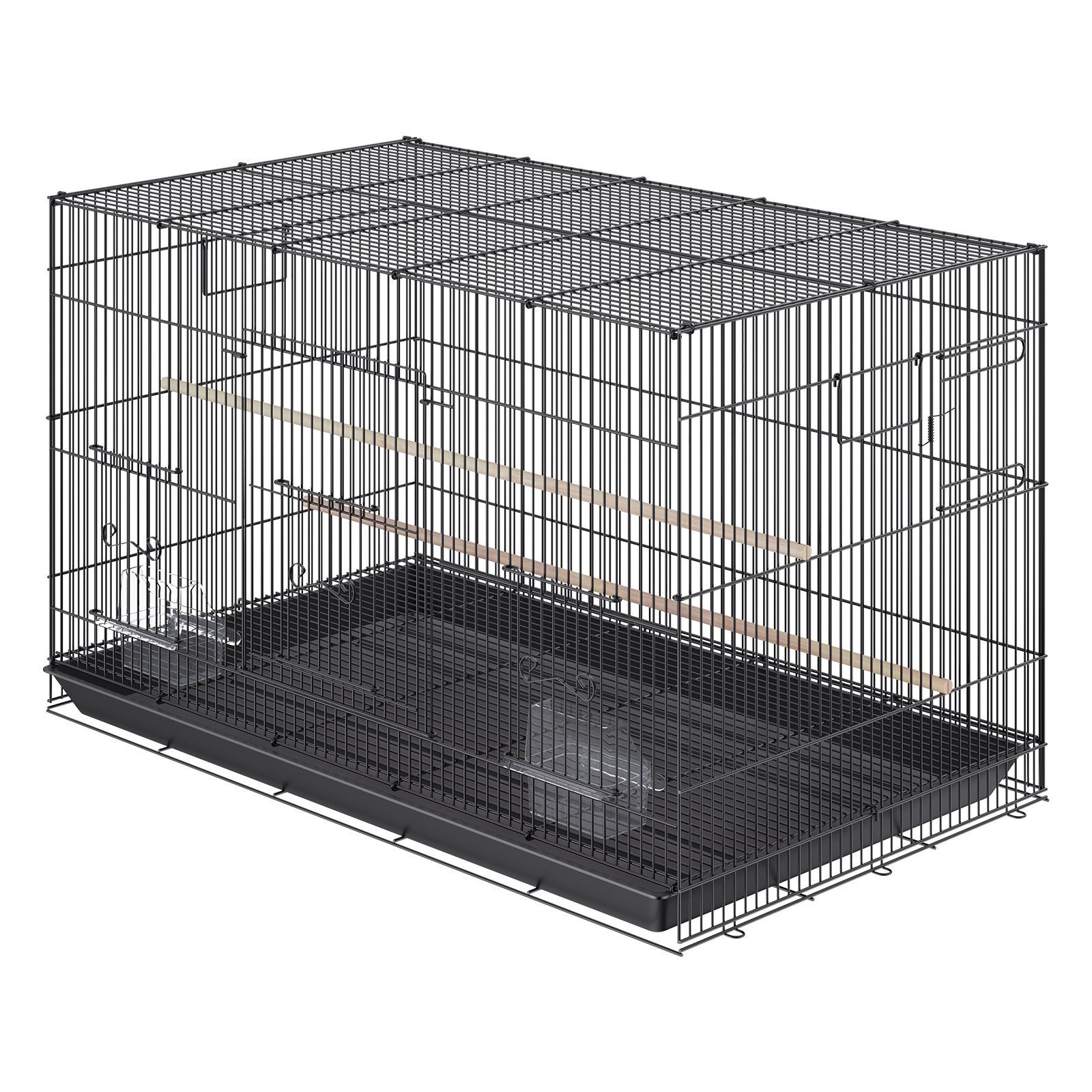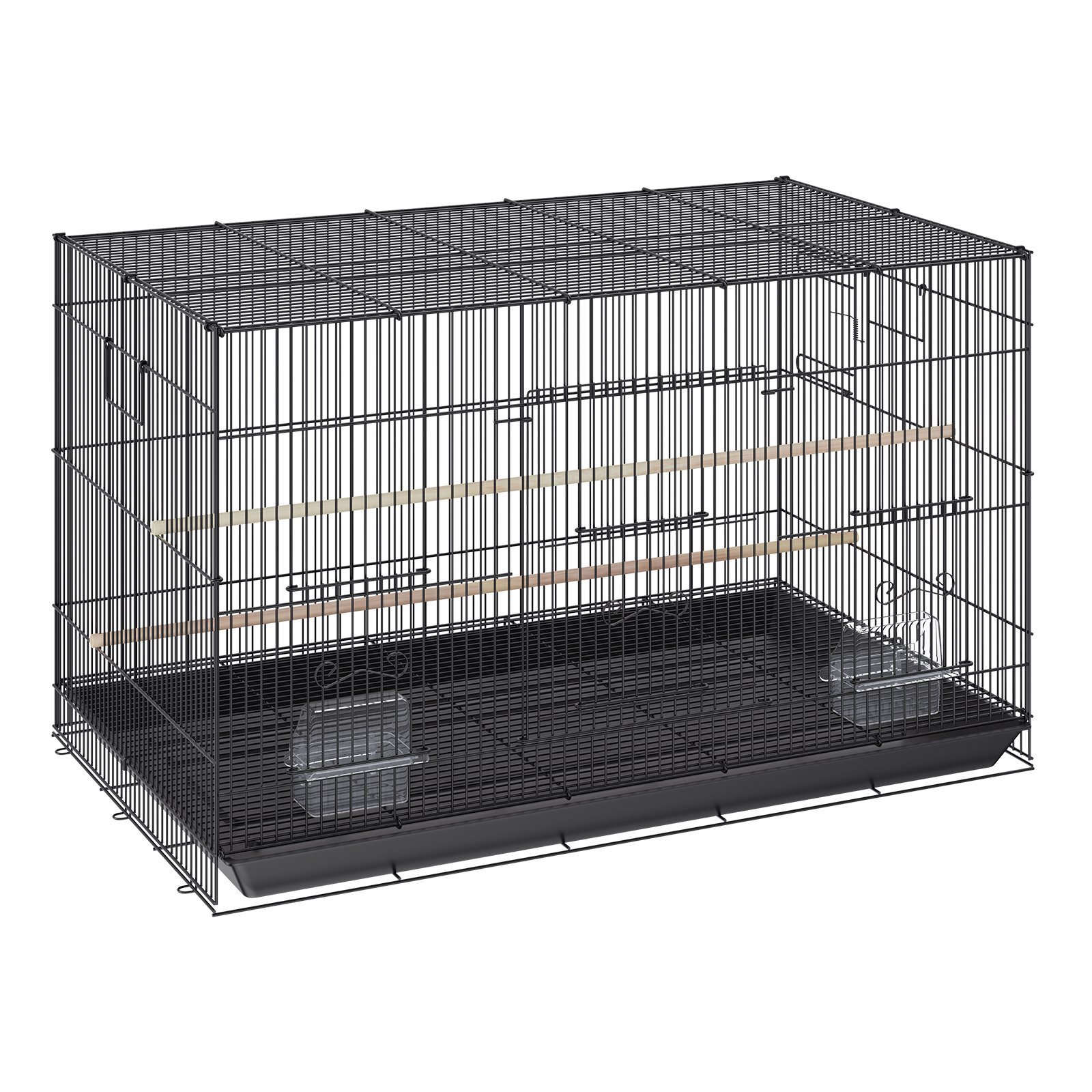 Measuring 29.9"L x 18.1"W x 17.9"H, with a 0.4'' grid spacing, this bird flight cage provides abundant room for 2-3 medium to large-sized birds to jump, fly, and satisfy their natural instincts. It accommodates multiple perches, toys, and feeding boxes, enhancing the fun factor.